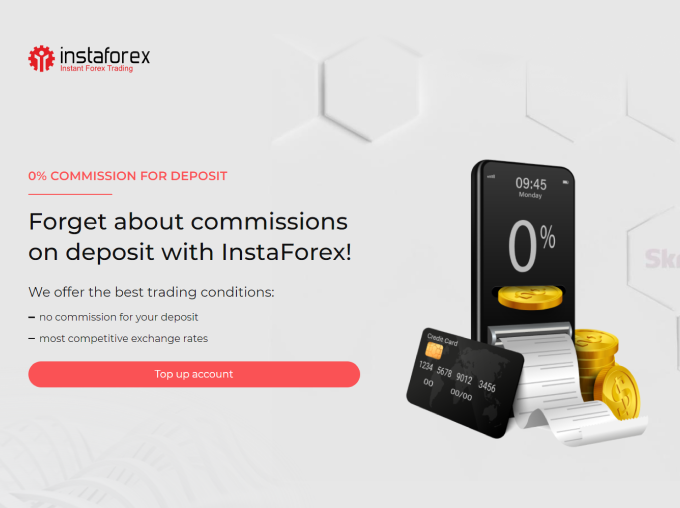 InstaForex offre le taux de change le plus avantageux et ne facture aucune commission pour les dépôts. Peu importe la méthode de trading utilisée par un client - le montant déposé est crédité sur un compte de trading en totalité, sans aucun frais.
