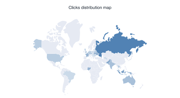 • Les statistiques de distribution des clics montrent les pays avec les taux les plus élevés de trafic du lien d’affiliation.