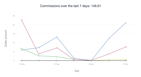 • Le graphique représente le nombre de personnes ayant cliqué pour la première fois sur votre lien d’affiliation.