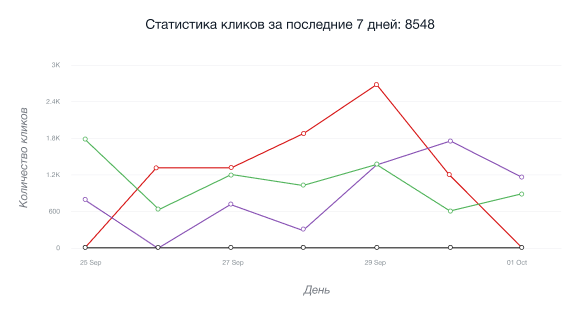 • Diagramma sizning hamkorlik havolangizga tavsiyalar tomonidan berilgan jami bosishlar sonini ko’rsatadi.