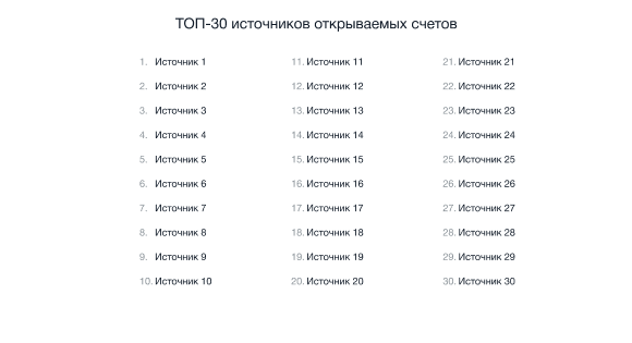 Top-30 hisob ochish manbalari