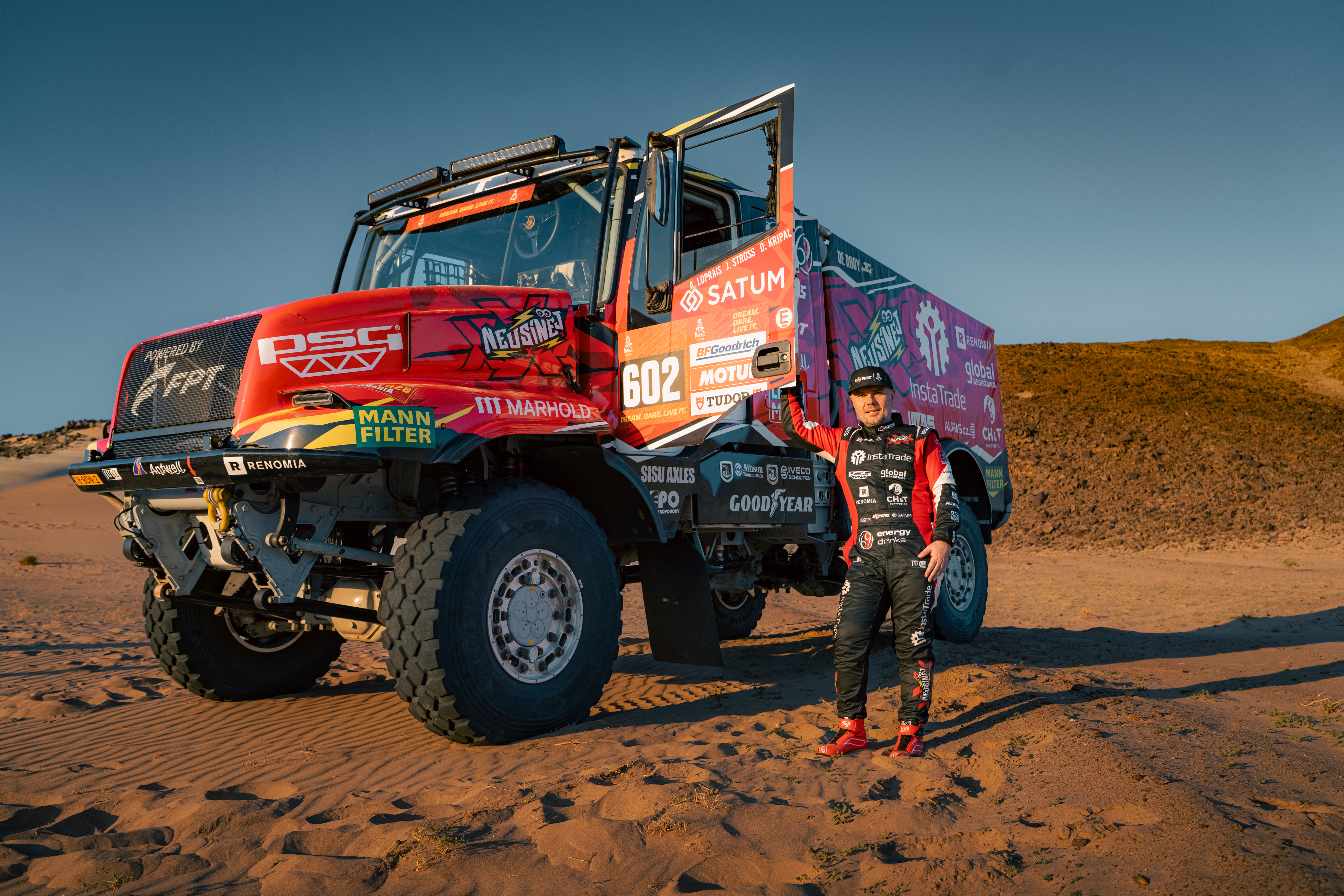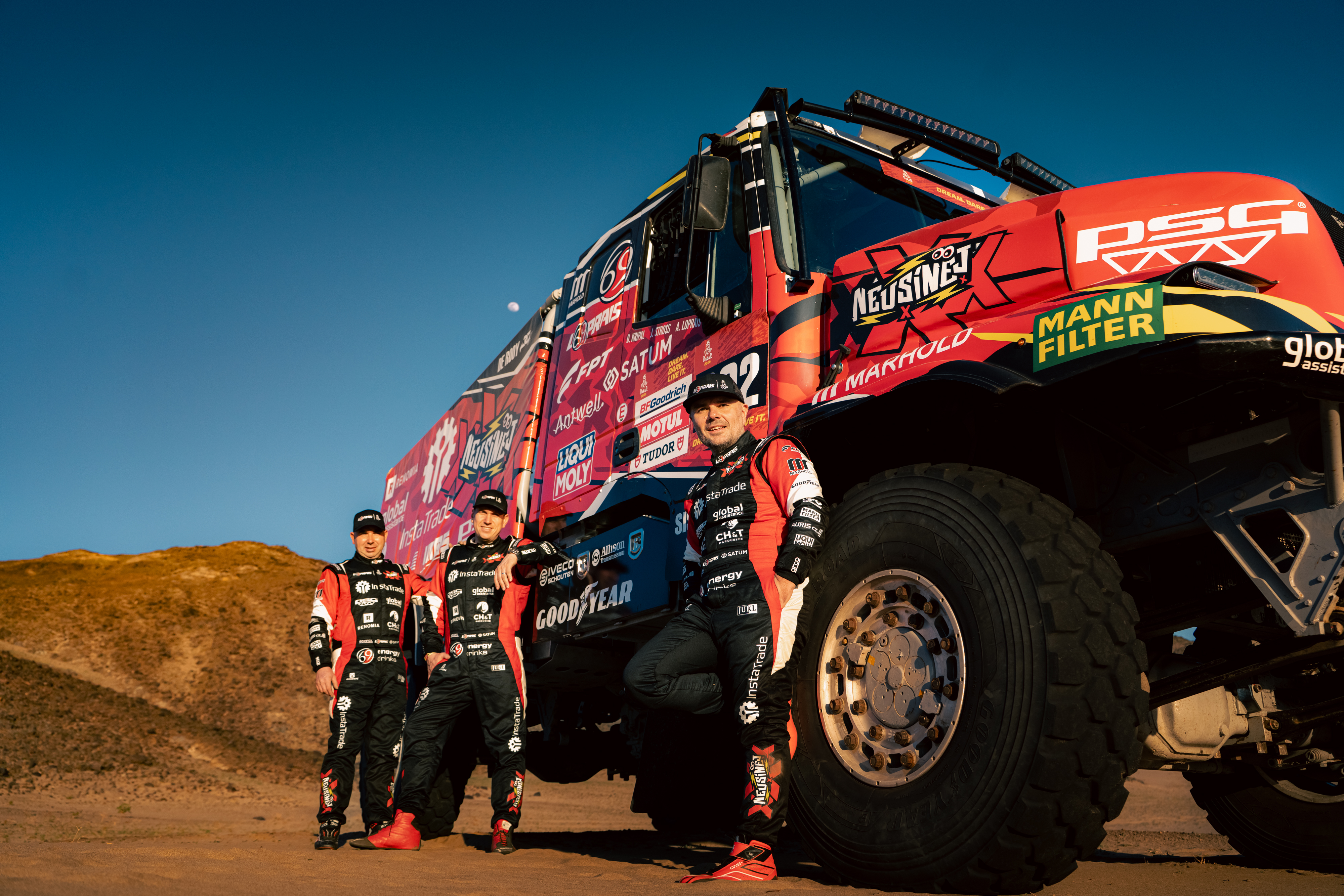 Dakar 2026 was the culmination. The Red Dragon truck, in red and gold livery, ran a dramatic race: five stage victories, a collision in the dunes, a rollover on stage twelve, but relentless fighting to the end. The result was second place overall, a second “silver”, and confirmation of the team’s world‑class status.